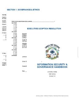 - Executive Adoption Resolution: Formal adoption of policies by leadership to activate the security program.